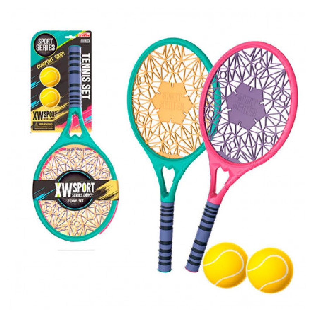 Set incluye 2 raquetas de plástico con mango acolchado y 2 pelotas.