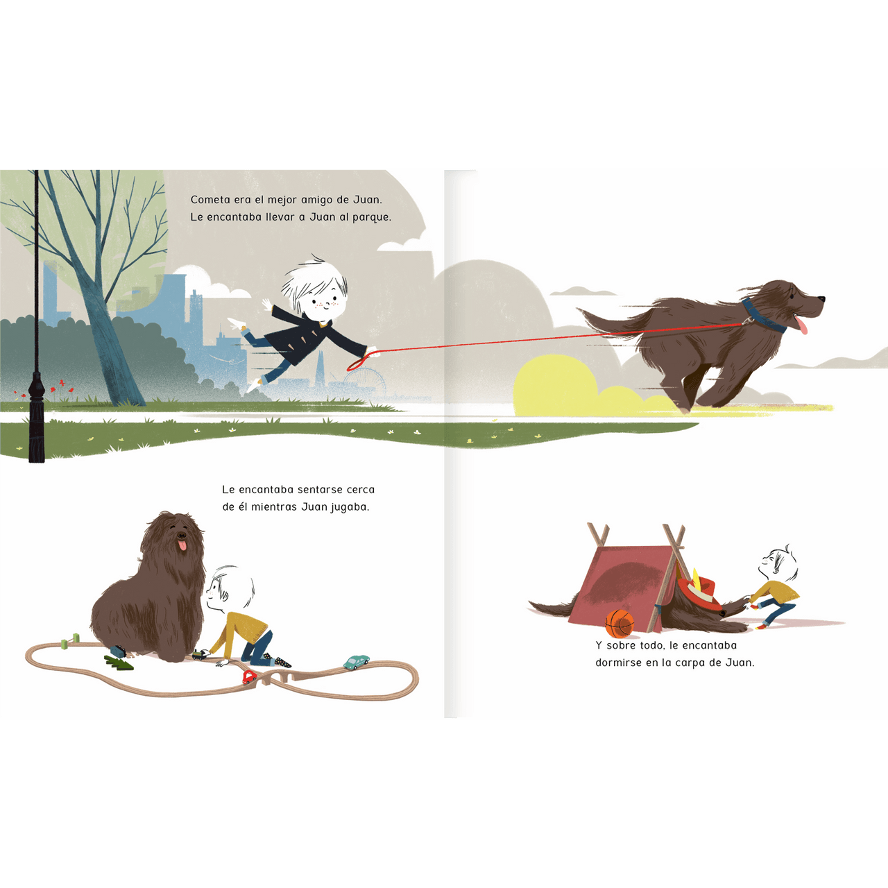 Cometa es el perro de Juan y es su mejor amigo. Hacen todo juntos. Pero un día Cometa no se levantó de su cama, ni siquiera para hacer sus cosas favoritas. Cuando Cometa fue al veterinario, Juan solo tuvo anhelos y esperanzas de que se mejorara. Una historia emotiva para no darse por vencidos cuando los tiempos son inciertos.