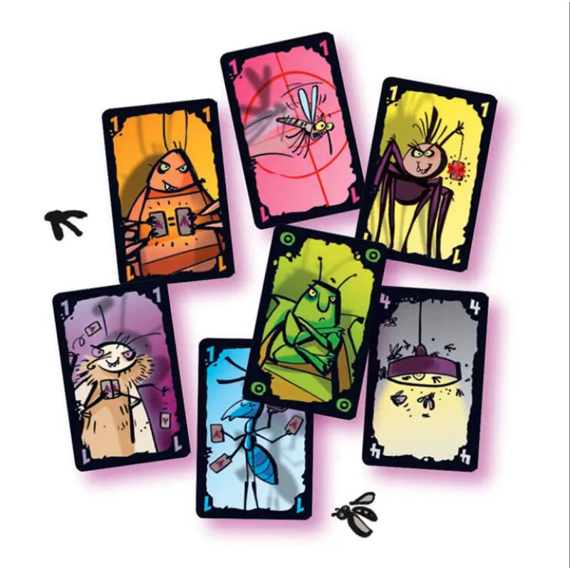 Es un juego de mesa donde la astucia es clave para la victoria. En este juego de cartas, los participantes deben deshacerse de todas sus cartas. Para ello, se coloca cartas sobre la pila siguiendo el número secuencial, ya sea ascendente o descendente. Además, ciertas cartas de insectos poseen habilidades únicas que permiten adicionales como hacer que los oponentes roben cartas o deshacerse de acciones duplicadas. El desafío principal radica en las cartas de polilla, las cuales no pueden descartarse por medios convencionales. Los jugadores deben recurrir a métodos creativos y discretos para eliminarlas de su mano sin ser detectados. La única restricción es mantener las manos sobre la mesa, a excepción del jugador asignado como la Chinche Guardián, quien tiene la tarea de vigilar y capturar a los tramposos. El primero en liberarse de todas sus cartas gana la partida. Este juego es perfecto para quienes disfrutan de la interacción, la estrategia y las risas en grupo. Componentes:- 20 cartas de acción.- 43 cartas de números.- 8 cartas de polilla tramposa.- 1 carta de chinche guardián.- Reglamento.