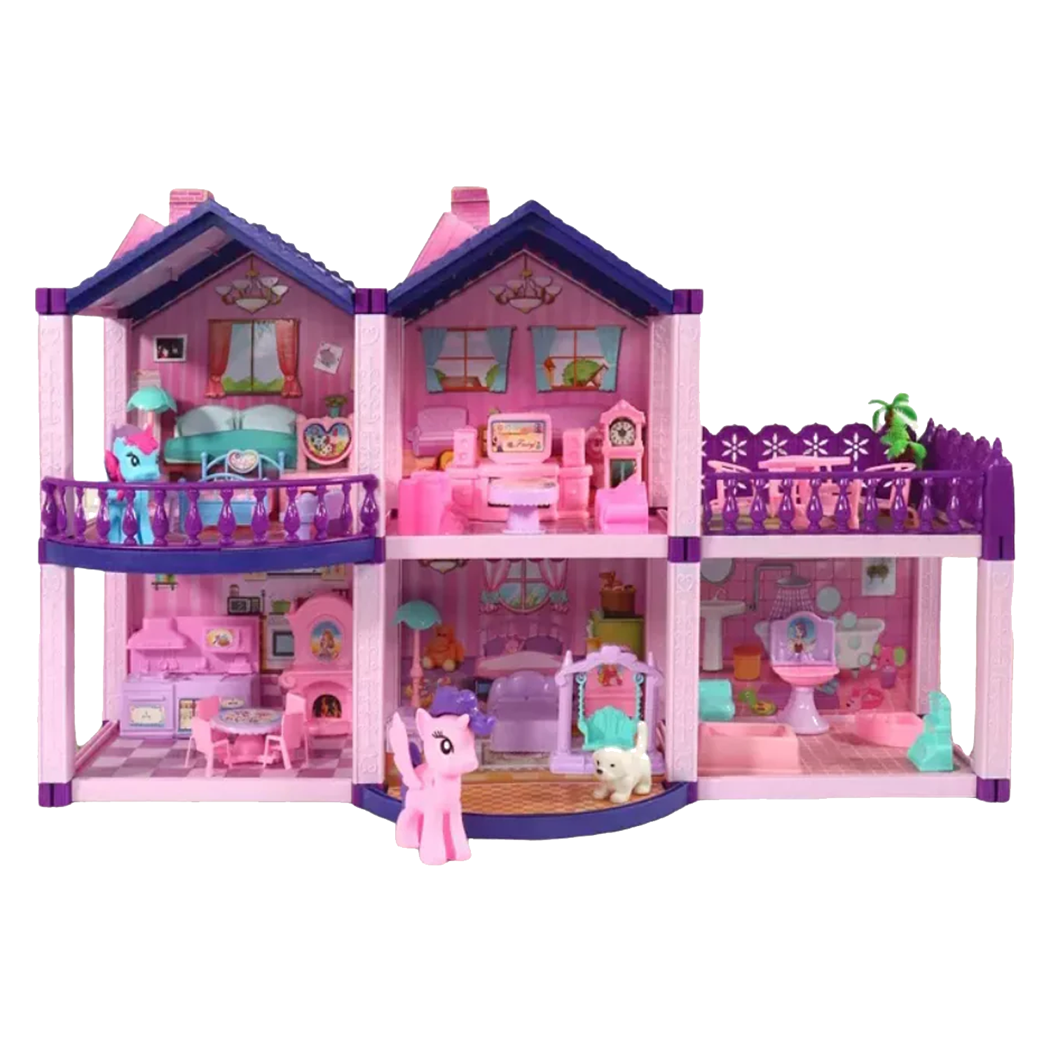 Casa de Muñecas Infantil con Muebles y Animales 60x22x38 cm
